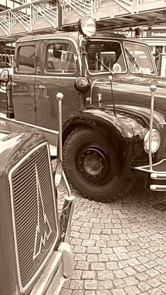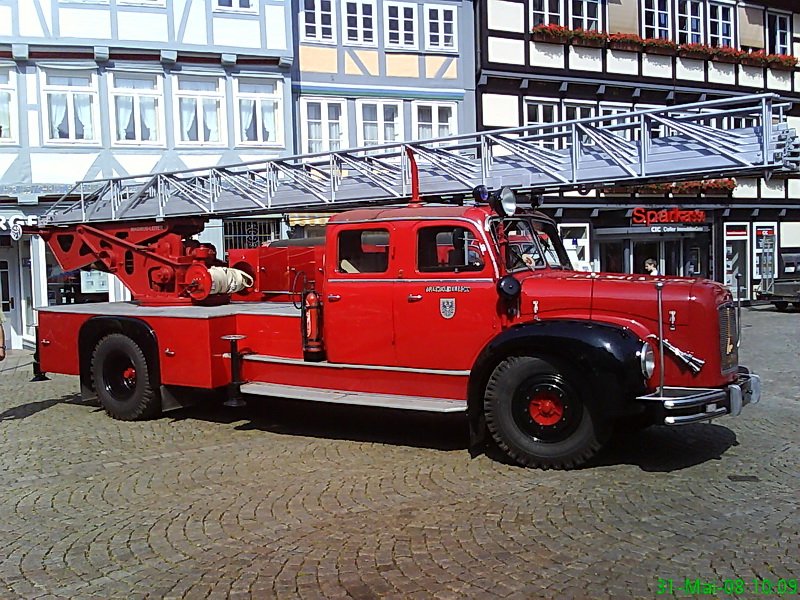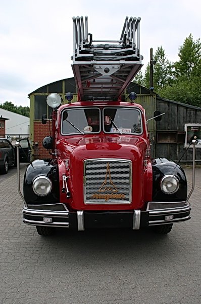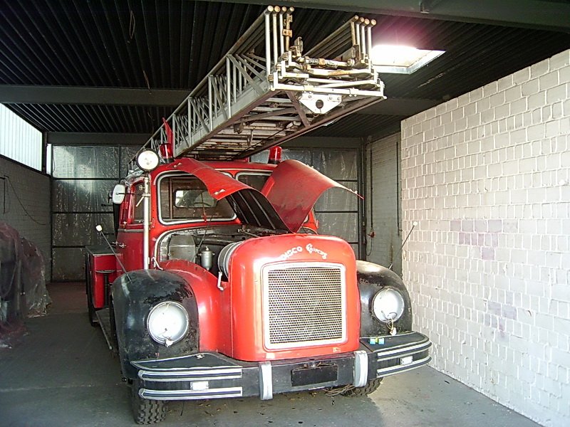 Bei dieser DL 30+2 ( +2 Meter Handauszug) handelt es sich um eine ehemalige Drehleiter der Berufsfeuerwehr Heilbronn.Heilbronn war die erste Stadt die 1951 wieder eine DL 30 in Auftrag gegeben hatte.Diese Drehleiter ist auf dem sehr imposanten Fahrgestell S6000 aufgebaut worden.Bei diesem Fahrgestell handelt es sich um eine Art Übergangslösung da das Nachfolge Fahrgestell (S6500 Rundhaube,V-Motor) bei der Bestellung noch nicht lieferbar gewesen ist, hatte man kurzerhand an den vorhandenen altbewährten Reihenvierzylindermotor (F4L514) einfach zwei weitere Zylinder angehängt und die Motorhaube demetsprechend angepasst.