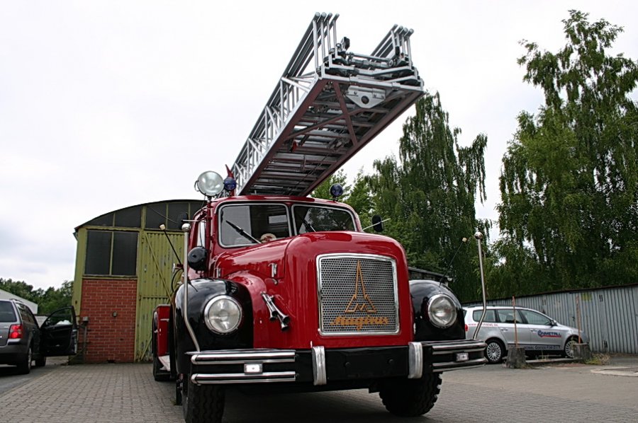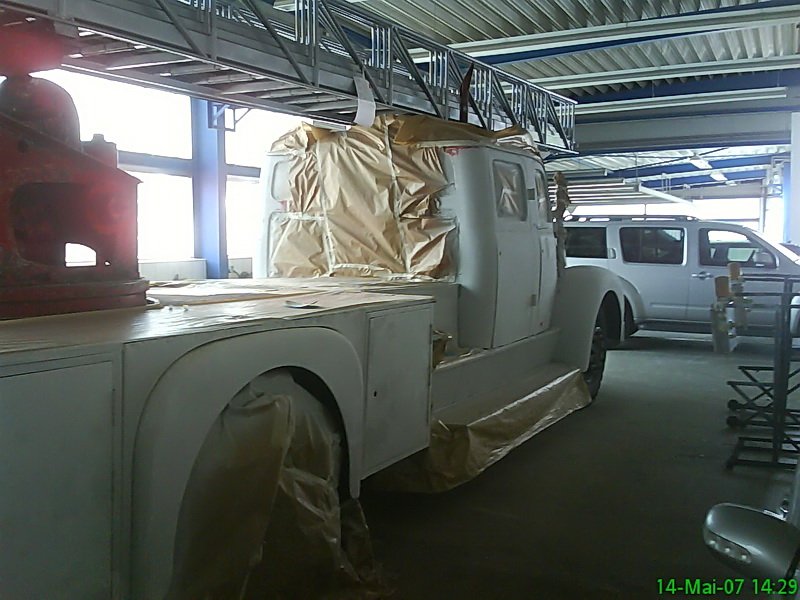 Die Drehleiter wurde durch uns aufwändig wieder komplett in den Original Zustand versetzt. Dies gilt für mich trotzdem, obwohl vielleicht damals eine andere Bereifung und oder Peilstangen verbaut gewesen sind.