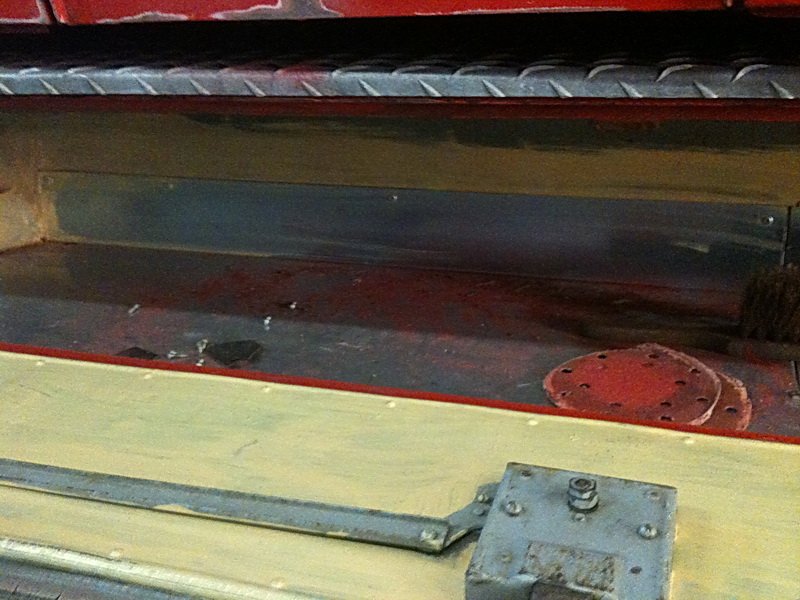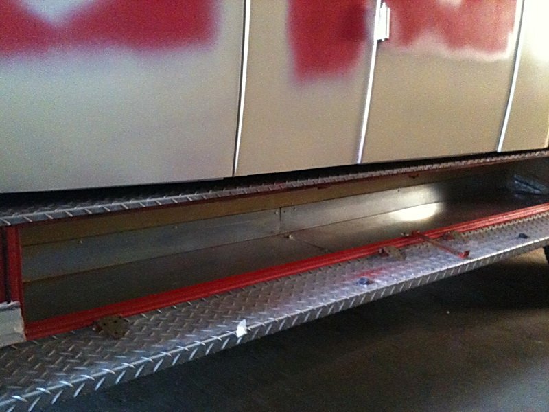 Der Aufbau besteht im Gegensatz zu den Fahrzeugen aus 10 Jahre zuvor, bereits aus Stahlblech.Alle Geräteräume sind mit Beleuchtung ausgestattet.