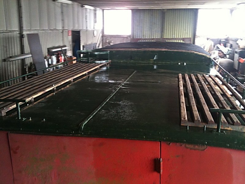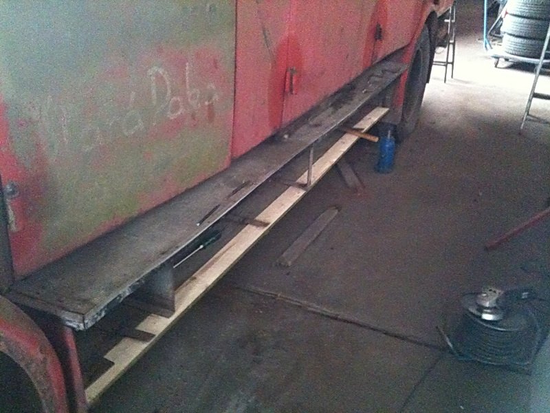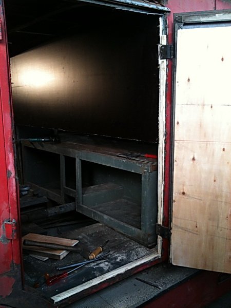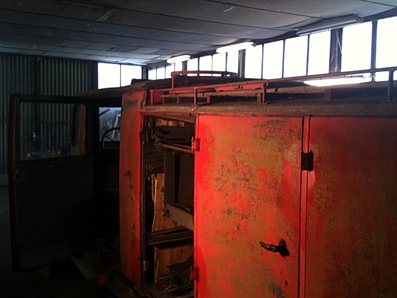 Aufbaugerippe aus Hartholz mit Versteifungswinkel etc. armiert , außen mit Blechverschalung bzw. innen mit Sperrholz und soweit aufbaubedingt mit Stahlblech verkleidet. Dachspriegel aus Hartholz. Dachverkleidung aus Stabbretter mit wasserdichtem Dachstoff / Pappe bezogen. Einstiegstüren innen verkleidet, über allen Türen Regenleisten.